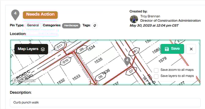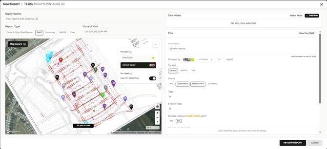 Field: This is typically in an informal punch list report that compiles all general pins that you have been using to monitor your construction site