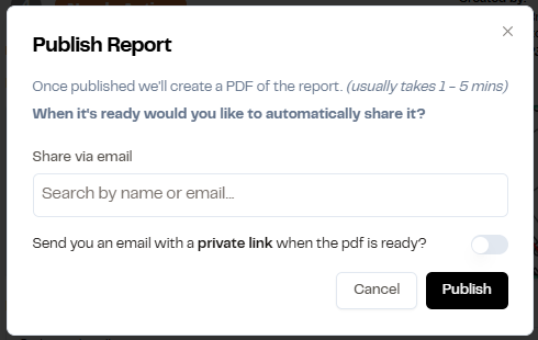 Here you can have Site Marker automatically send the report to people on the project or to yourself by default after publishing.